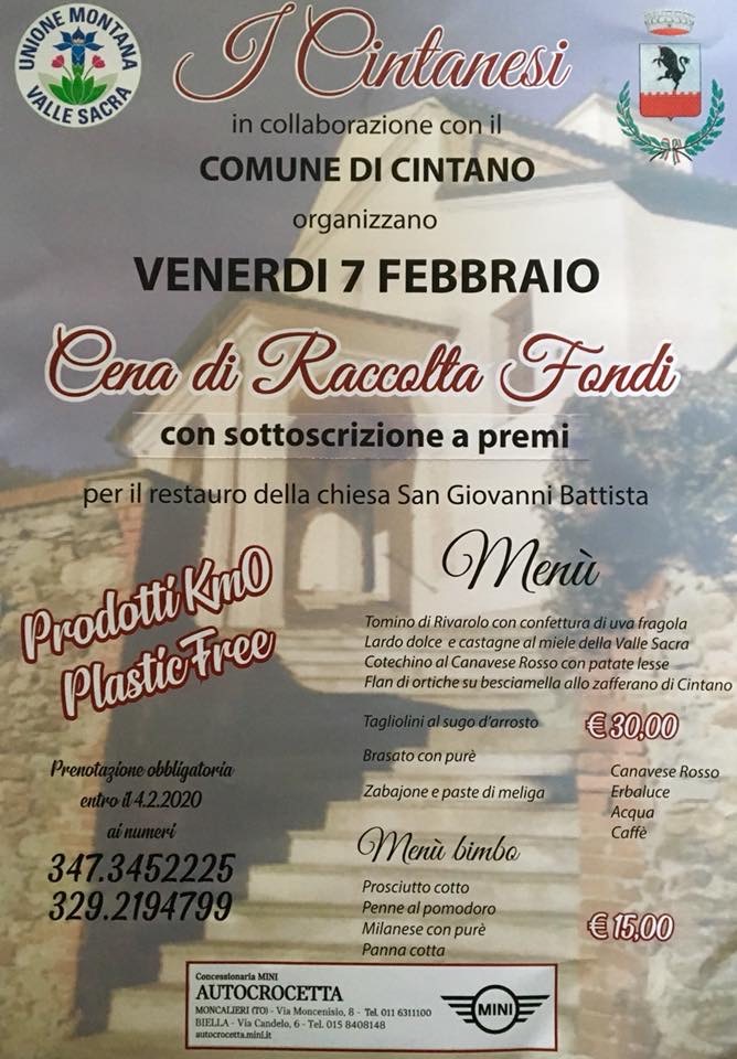 CENA DI RACCOLTA FONDI A FAVORE DELLA PARROCCHIA DI SAN GIOVANNI BATTISTA