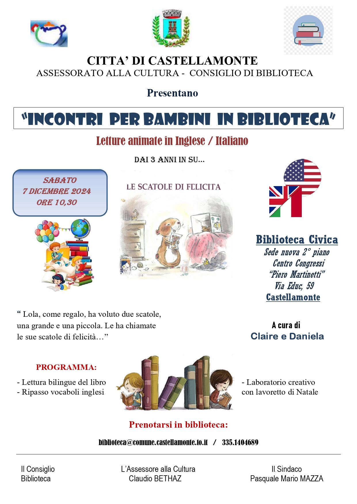 Letture animate in inglese-italiano dai 3 anni in su - "Le scatole della felicità"- Biblioteca Civica Centro Congressi Martinetti - Ingresso gratuito su prenotazione