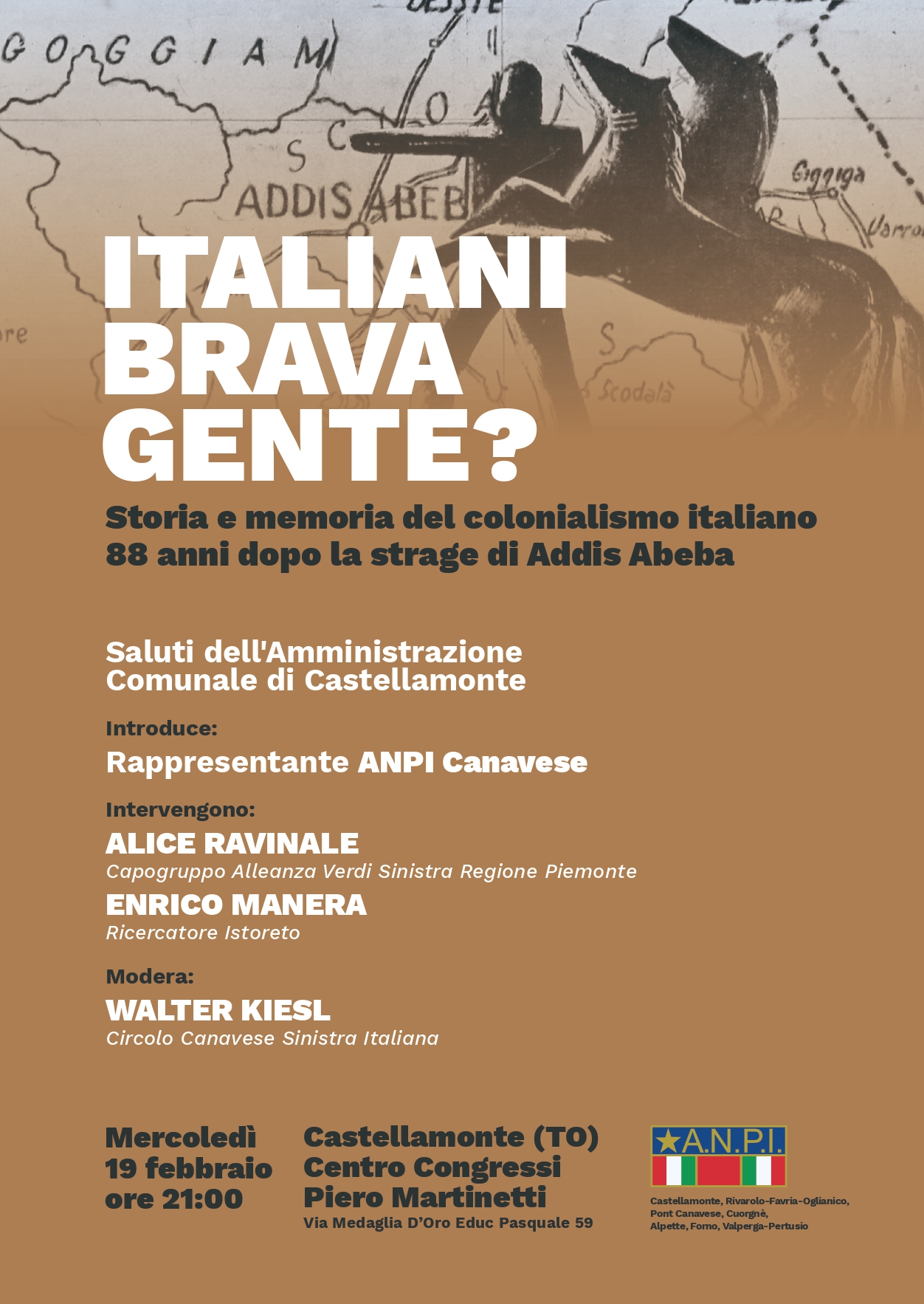 "Storia e memoria del colonialismo italiano 88 anni dopo la strage di Addis Abeba" - Mercoledì 19 febbraio ore 21,00 Centro Congressi Piero Martinetti