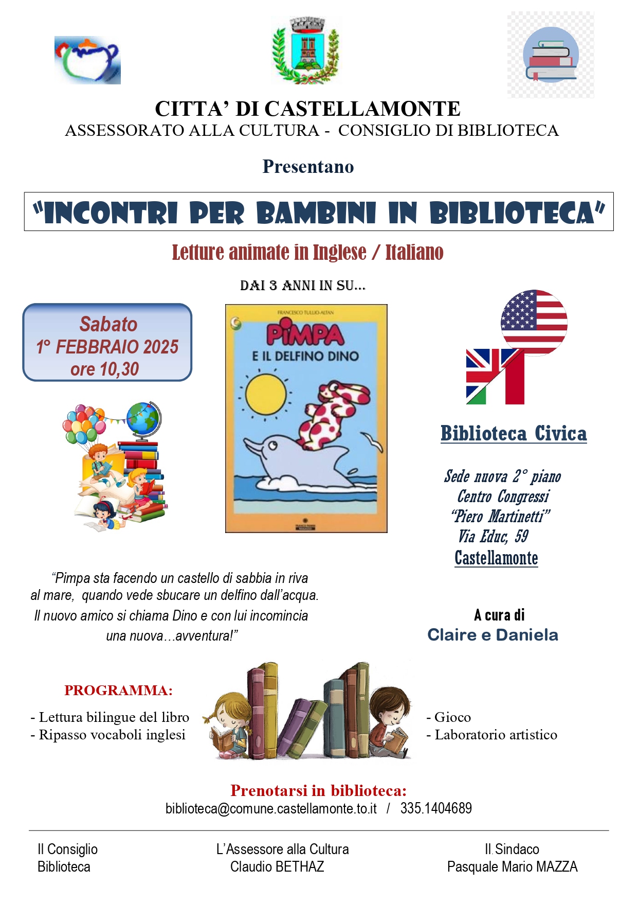 "Pimpa e il delfino blu" letture in inglese / italiano e laboratorio creativo a cura di Claire e Daniela - Biblioteca Civica sabato 1° febbraio 2025 ore 10,30