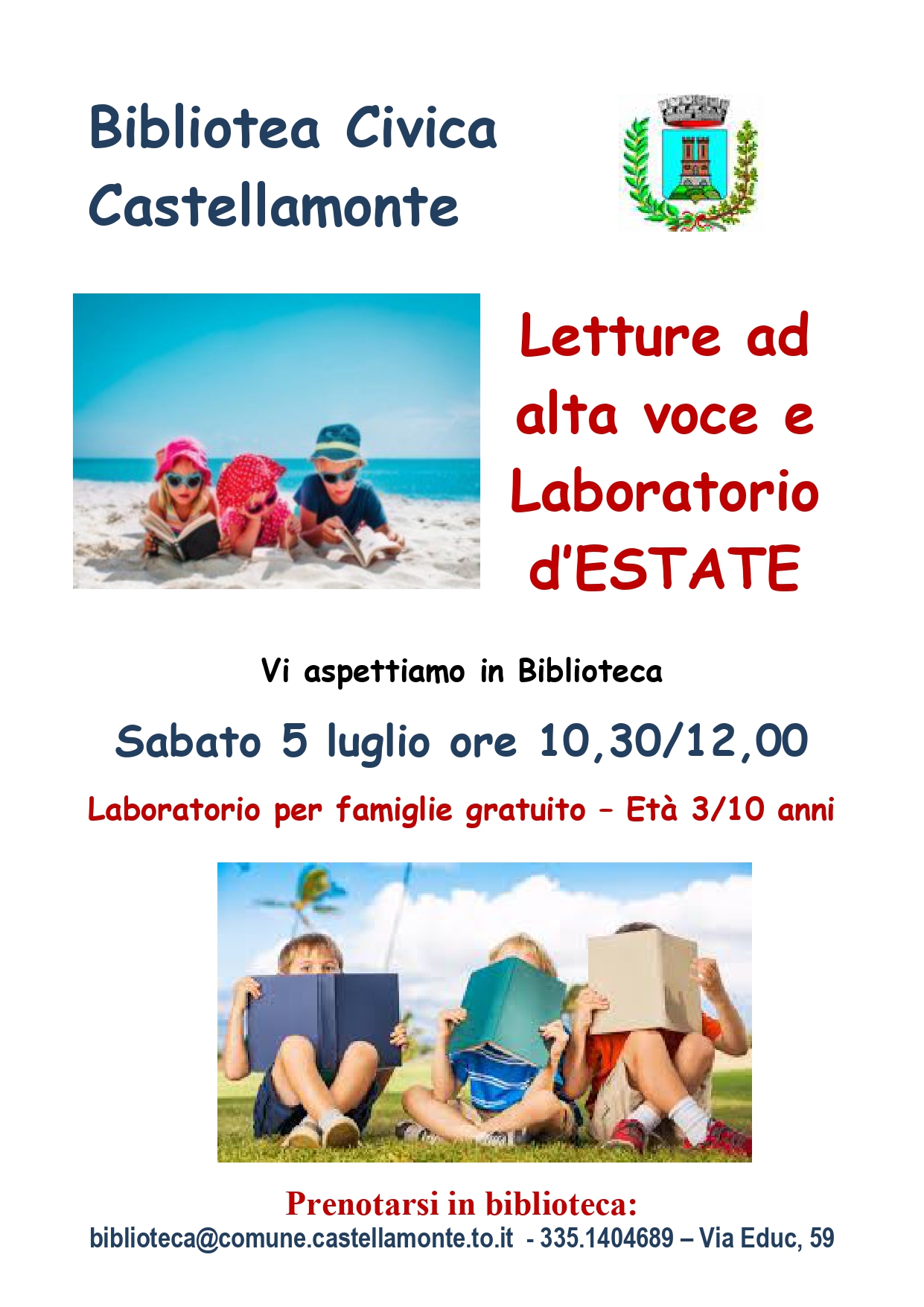 In biblioteca letture ad alta voce e laboratorio d'estate per bambini - Gratuito e su prenotazione - sabato 5 luglio ore 10.30i