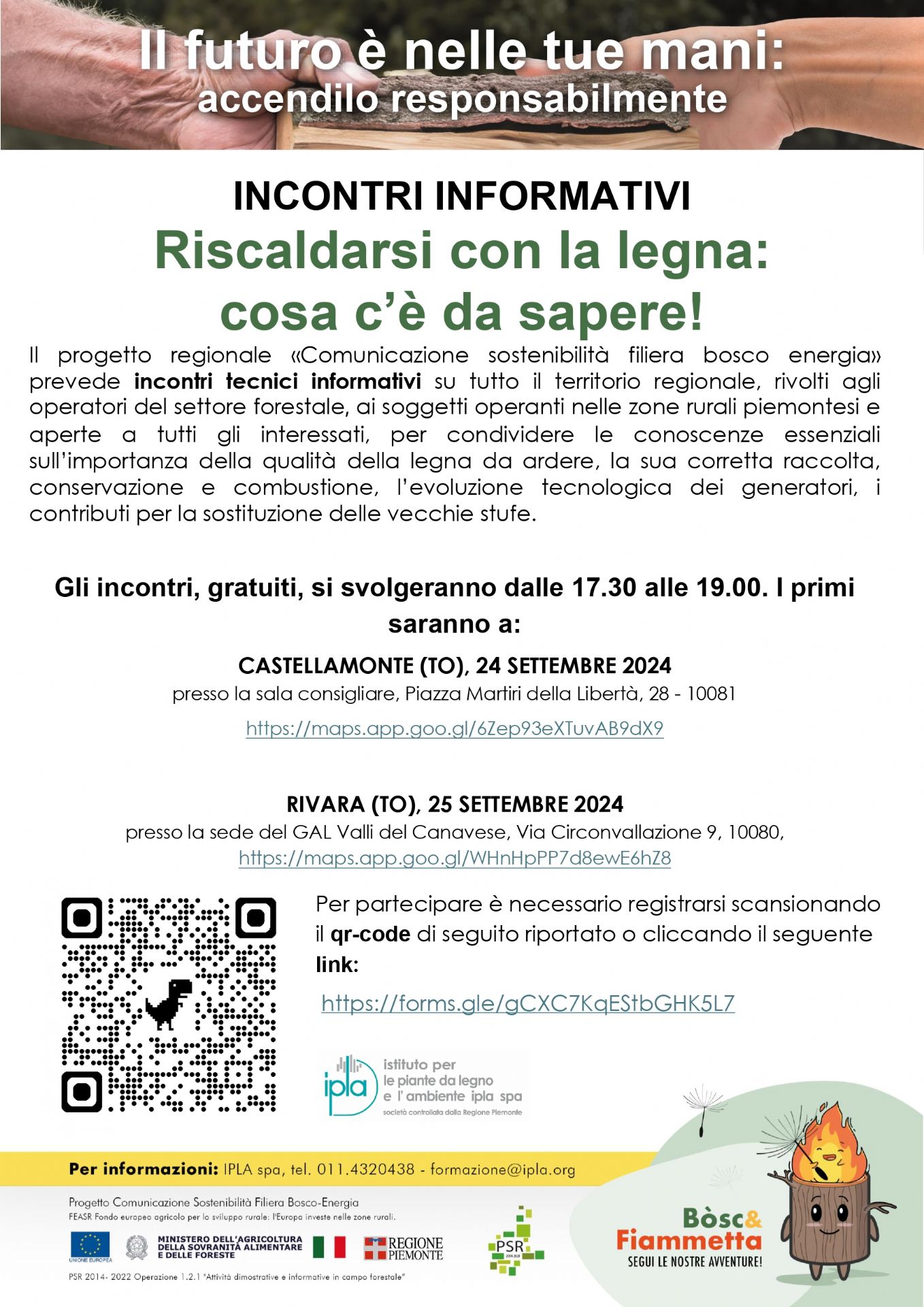 Il progetto regionale «Comunicazione sostenibilità filiera bosco energia» prevede incontri tecnici informativi su tutto il territorio regionale, rivoltiagli operatori del settore forestale,ai soggetti operanti nelle zone rurali piemontesi e aperte a tutti gli interessati, per condividere le conoscenze essenziali sull’importanza della qualità della legna da ardere, la sua corretta raccolta, conservazione e combustione, l’evoluzione tecnologica dei generatori, i contributi per la sostituzione delle vecchie stufe.