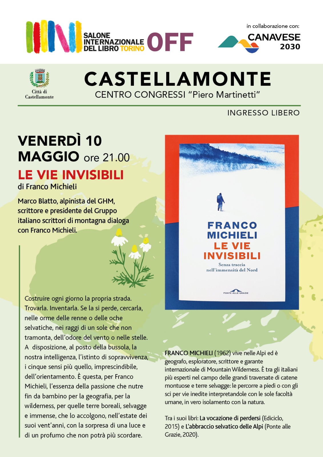 Presentazione del libro: "LE VIE INVISIBILI" di Franco Michieli - Venerdì 10 maggio ore 21,00 presso il Centro Congressi "P.Martinetti" - Nell'ambito del Salone Internazionale del Libro Torino OFF