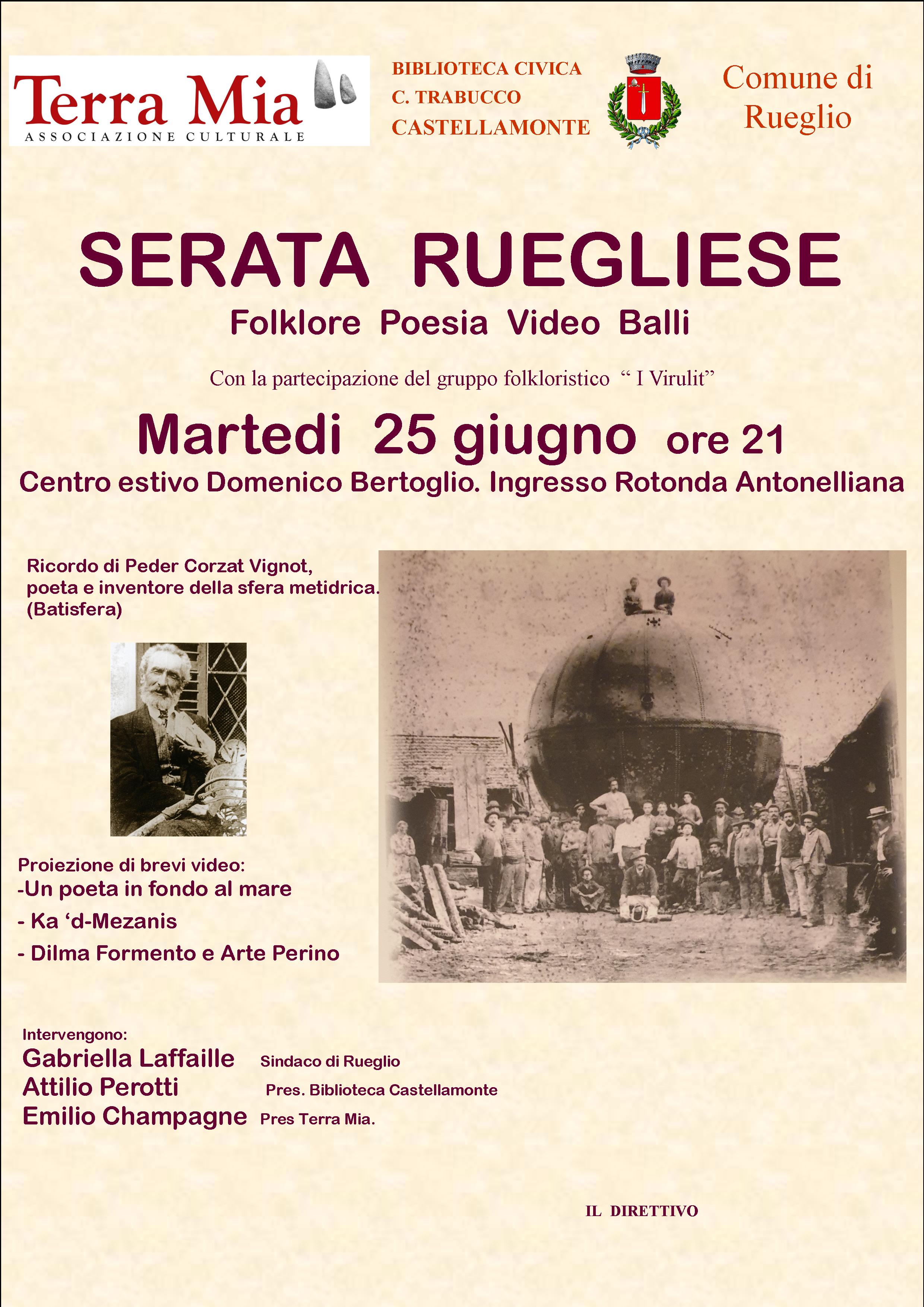Martedì 25 giugno 2019 ore 21.00 presso il Centro estivo Domenico Bertoglio (ingesso Rotonda Antonelliana) serata di folklore, poesia, video e balli