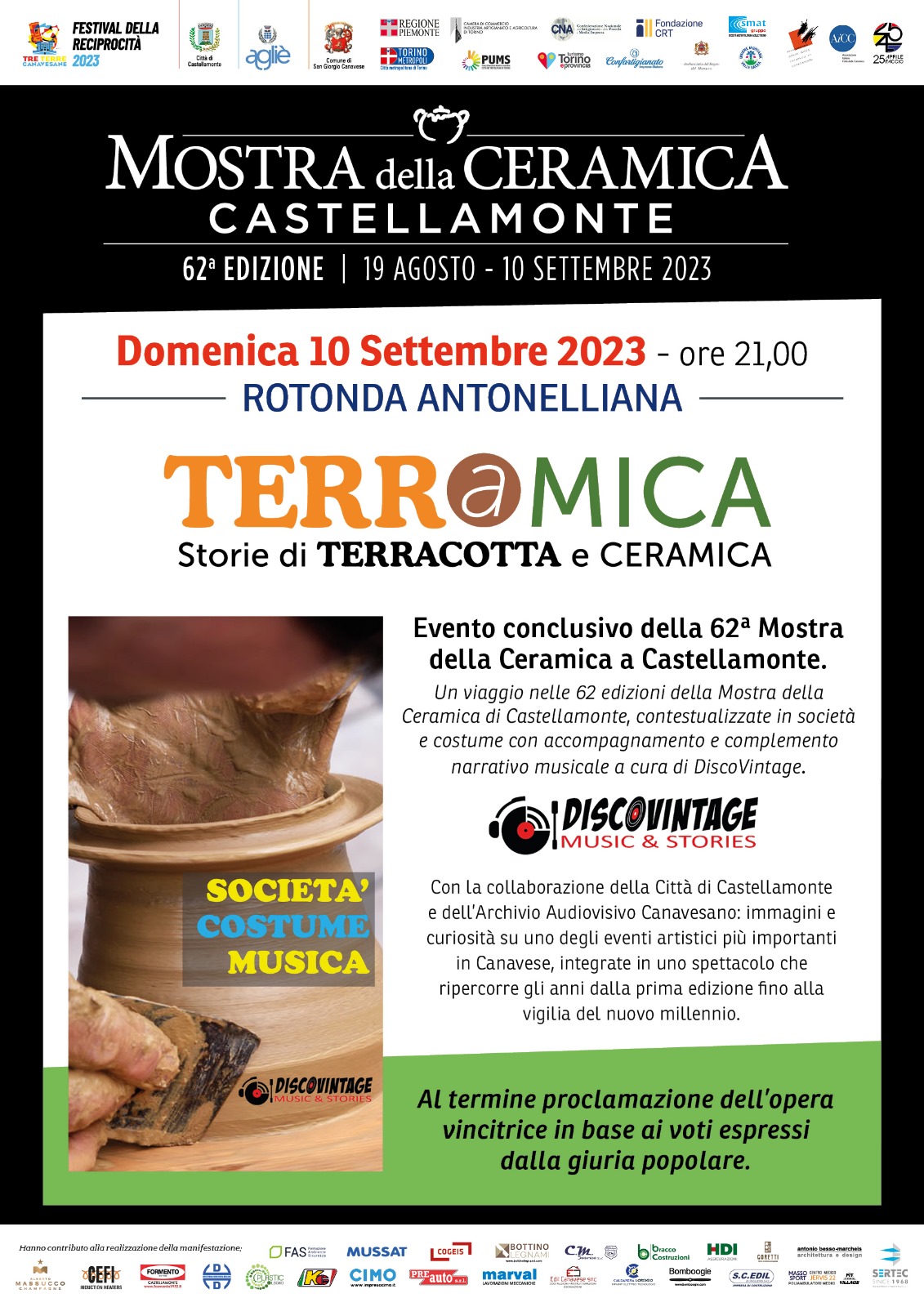 Storie di TERRACOTTA e CERAMICA - Evento conclusivo della 62° Mostra della Ceramica a Castellamonte - Domenica 10 settembre 2023 ore 21,00 Rotonda Antonelliana