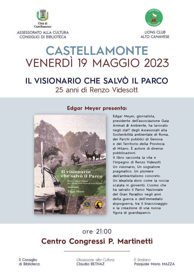 Edgar Meyer presenta il libro: "IL VISIONARIO CHE SALVO' IL PARCO - 25 anni di RENZO VIDESOTT" - Venerdì 19 maggio ore 21,00 presso il Centro Congressi "Piero Martinetti"