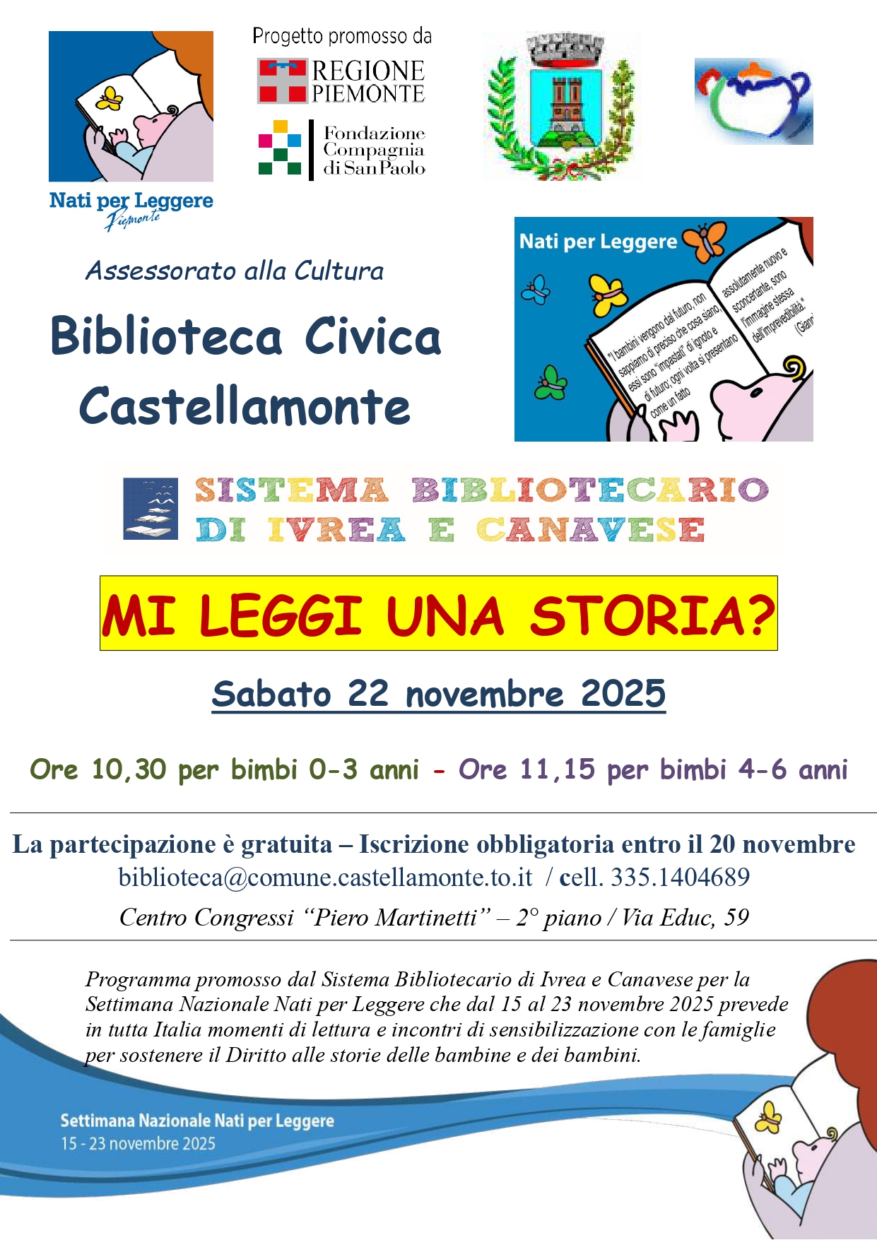 Laboratorio di lettura animata per bimbi 0/3 e 4/6 anni in occasione della Settimana Nati per Leggere - Sabato mattina 22 novembre presso la Biblioteca Civica "Carlo Trabucco" - La partecipazione è gratuita con iscrizione obbligatoria