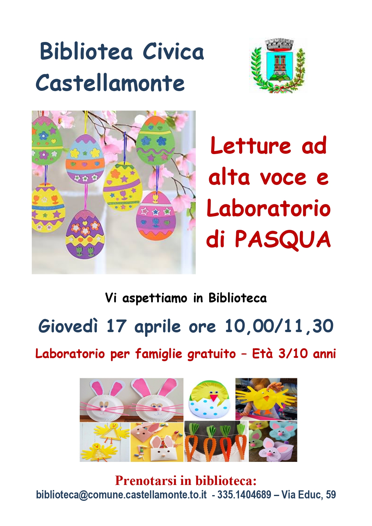 Letture ad alta voce e laboratorio di Pasqua per bambini/e età 3/10 anni - Giovedì 17 aprile dalle ore 10,00 alle 11,30 - Ingresso gratuito su prenotazione - Cfr. locandina