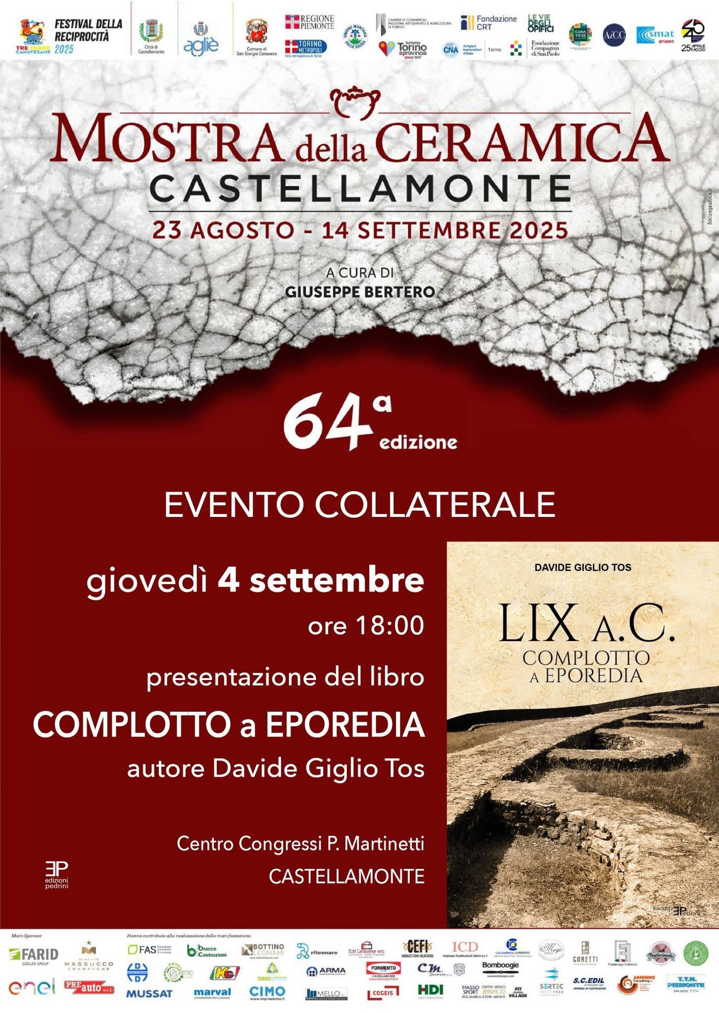 "LIX a .C. Complotto a Eporedia" con l'autore Davide Giglio Tos - Evento collaterale della 64° Mostra della Ceramica - Giovedì 4 settembre ore 18.00 Centro Congressi Piero Martinetti
