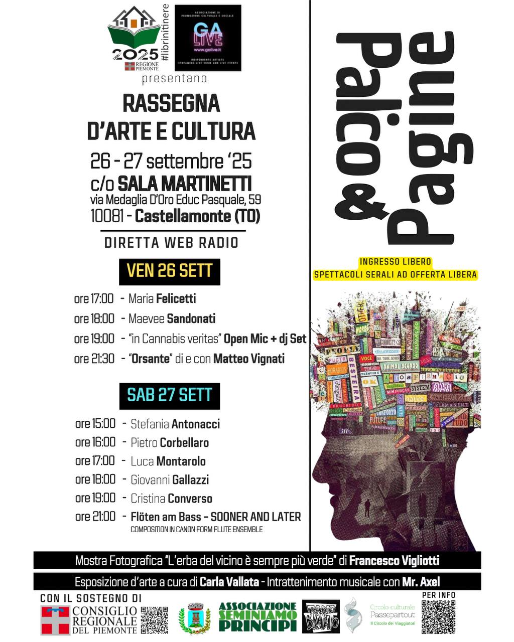 "Palco&Pagine" Diretta web radio / Mostra fotografica / Esposizione d'arte / Intrattenimento musicale / Spettacoli teatrali - Venerdì 26 e sabato 27 settembre pomeriggio / sera - Centro Congressi "Piero Martinetti"