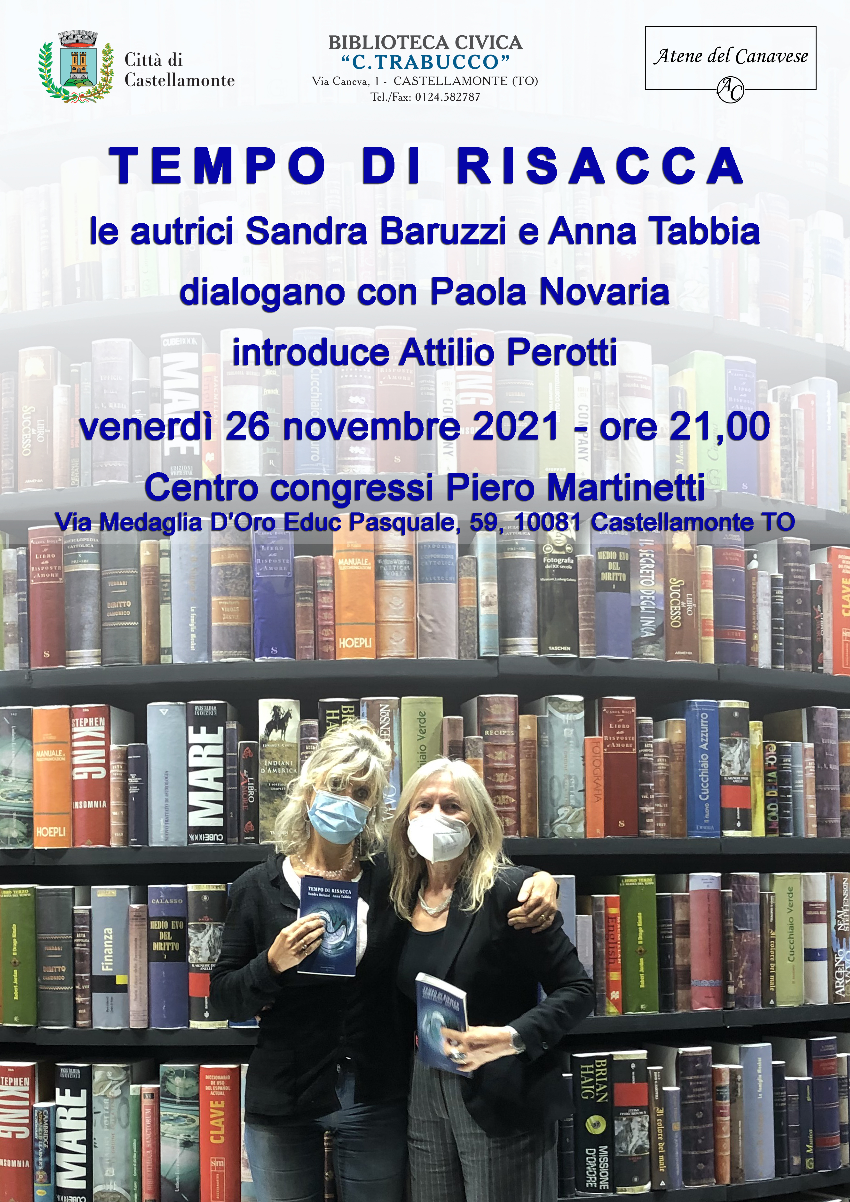 "TEMPO DI RISACCA": le autrici Sandra BARUZZI e Anna TABBIA dialogano con Paola Novaria venerdì 26 novembre alle ore 21,00 al Centro Congressi "P.Martinetti" - A cura del Consiglio di Biblioteca