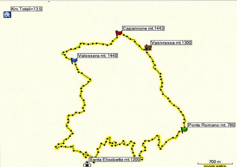 | Punto di partenza | Ponte Romano (780 m s.l.m.) |